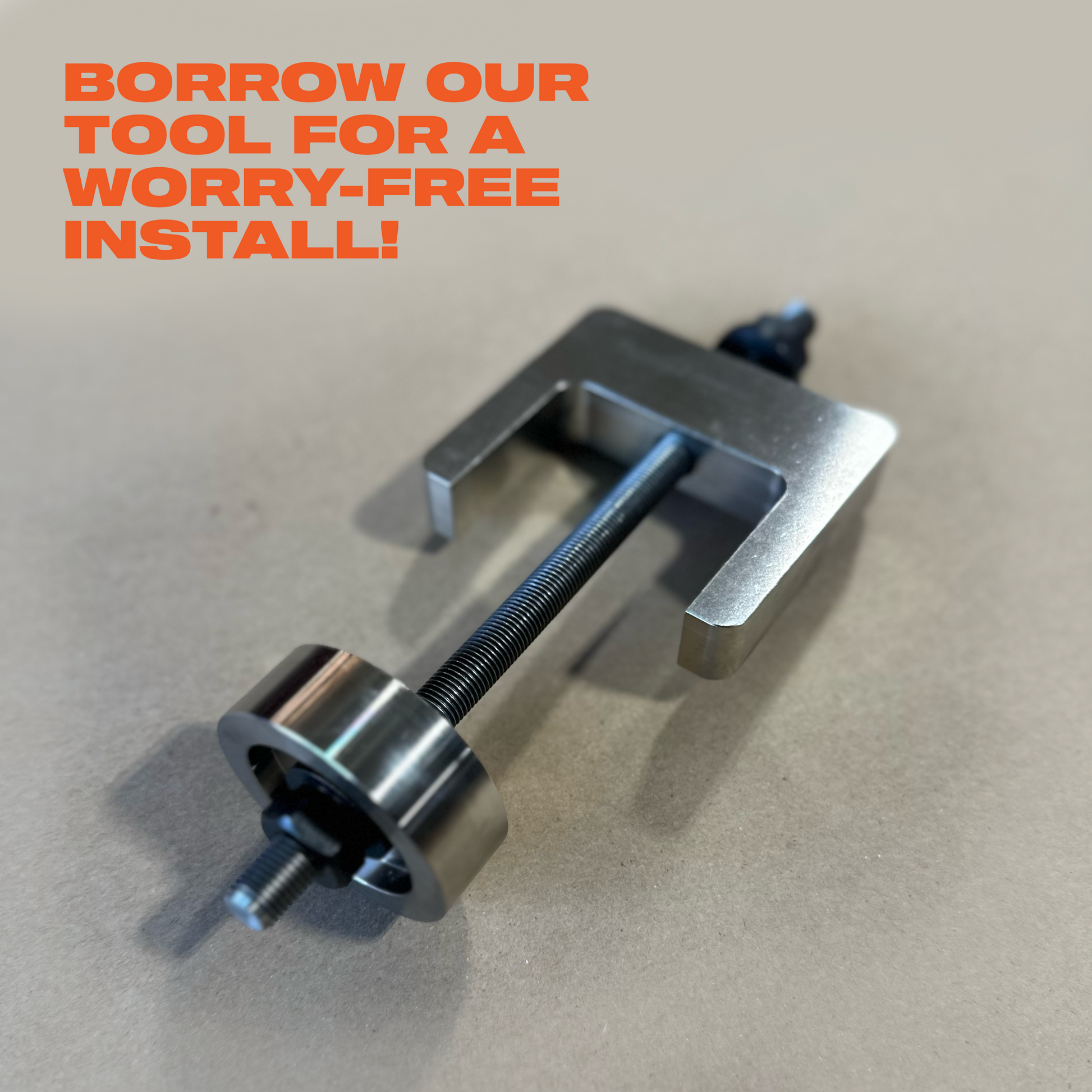 While we always recommend having a pro install these, a confident DIYer can absolutely get the job done at home. The most important thing is to use our specialized RTAB Installation Tool. We can't stress this enough—if you install the bearings incorrectly, they can be damaged and won't work properly, which would also void your warranty. Please note: many other RTAB tools on the market are designed specifically for rubber bushings and can permanently damage the sensitive spherical bearing. Our tool is custom-designed to ensure they're pressed in perfectly, protecting your investment. You can borrow the tool for a fully refundable deposit, and all you have to cover is the return shipping.
